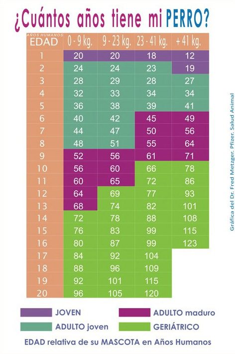 Si pensamos como un perro, ¡aquí se compara la edad de un perro con la de un humano! Tenga en cuenta que esta calculadora es para un perro de raza mediana. Consulte la tabla que aparece a continuación para ver las diferencias entre perros de distintos tamaños (pequeño, mediano, grande, gigante). Debería darle una buena idea de dónde está su perro en el proceso de desarrollo/envejecimiento.