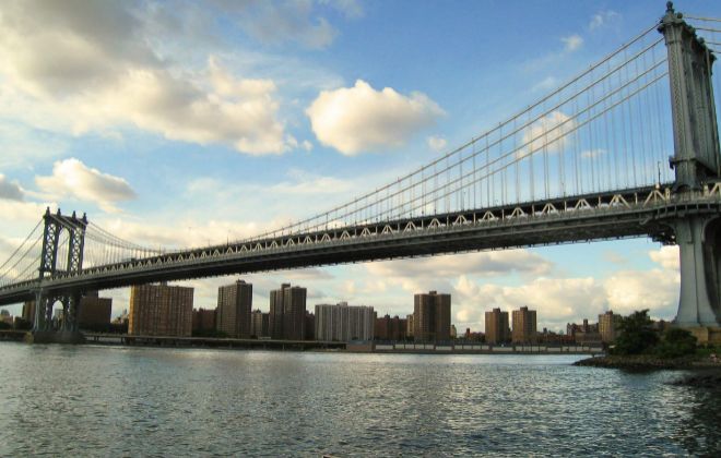 DUMBO son las siglas de Down Under the Manhattan Bridge Overpass (Bajo el puente de Manhattan), pero este barrio de Brooklyn no está atrapado bajo un puente, sino bajo dos, que se extienden desde el oeste del puente de Brooklyn hasta el este del puente de Manhattan. No hace mucho era una zona desolada de almacenes vacíos, pero ha renacido por completo convirtiéndose en un barrio residencial y comercial de moda (y caro). Esos almacenes se han renovado y ahora son viviendas tipo loft de moda, espacios de oficina para startups y galerías de arte. Los promotores también han construido nuevos condominios y siguen construyendo el barrio.