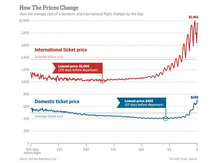 Si no nos crees, la misma empresa repitió el estudio dos años después. En este informe, afirmaba que el precio medio global más bajo del billete para los vuelos nacionales se puede encontrar con 57 días de antelación a la salida. El precio medio más bajo de los billetes de los vuelos internacionales se encontraba con 171 días de antelación a la salida. En dos años se ha producido un cambio masivo en los días que se consideran más baratos para comprar vuelos.
